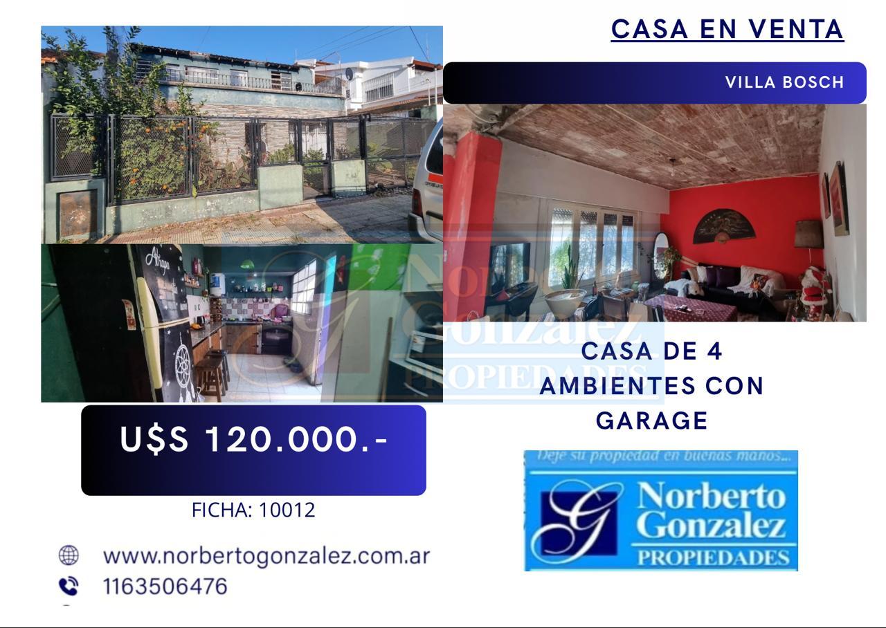 EN VENTA EN VILLA BOSCH CASA DE 4 AMBIENTES CON GARAGE
