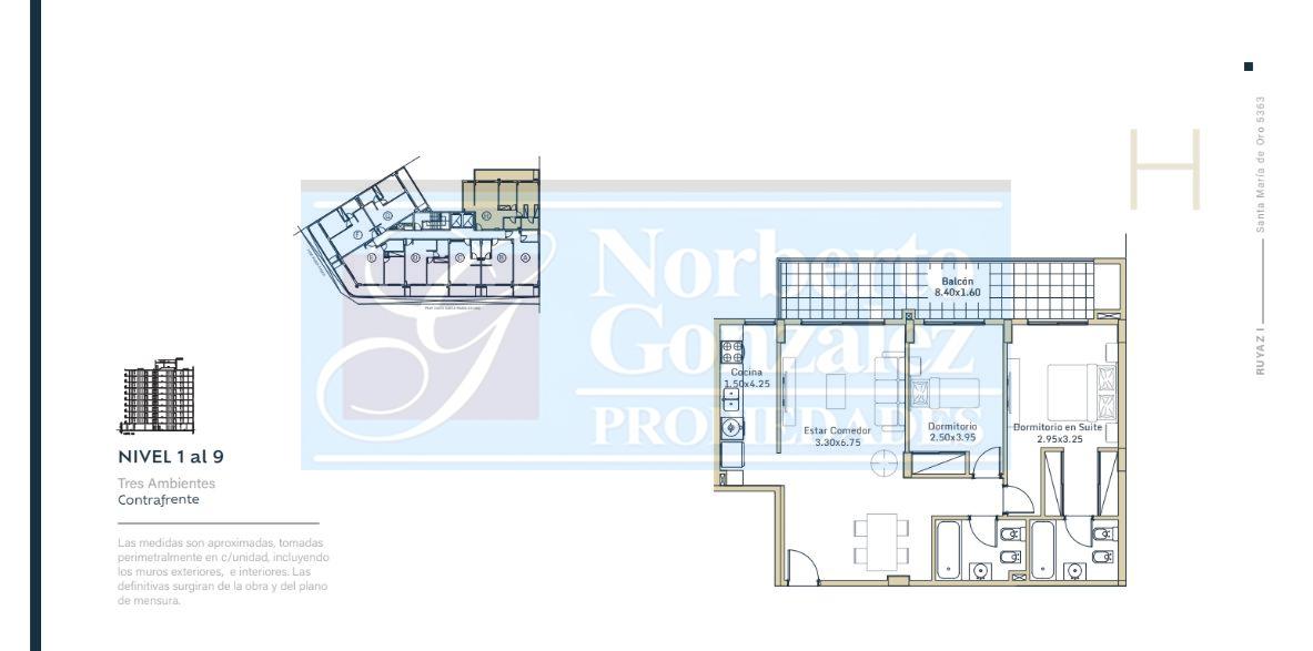 VILLA BOSCH: Santa María de Oro 5363 Tu hogar, tu lugar, una inversión que crece. Ubicado en la esquina de José María Bosch y Santa María de Oro, en el corazón de Villa Bosch, este nuevo desarrollo inmobiliario redefine el confort urbano con una propuesta que combina diseño, calidad constructiva y ubicación estratégica. A pocos pasos del centro comercial, rodeado de cafeterías, locales, servicios y espacios verdes, y con excelente conectividad gracias a la estación J. M. Bosch del Ferrocarril Urquiza y múltiples líneas de colectivos, Santa María de Oro 5363 ofrece un estilo de vida moderno, cómodo y funcional, con todo lo que necesitas al alcance de tu mano. El Edificio: 9 pisos y 72 unidades funcionales. Departamentos de 1, 2 y 3 ambientes, amplios, luminosos y de diseño contemporáneo. Amplios balcones con parrilla individual. Cocheras cubiertas y descubiertas. Dos ascensores con 10 paradas cada uno. Hall de ingreso jerarquizado con detalles de categoría. Calidad Constructiva: Cada detalle fue pensado para garantizar durabilidad, confort y eficiencia energética. Estructura de hormigón armado según normas Cirsoc. Mampostería de ladrillo hueco cerámico, con excelente aislación térmica y acústica. Cubierta de losa de hormigón con aislación hidráulica. Revoques exteriores con revestimiento plástico texturado y color definido por proyecto. Cielorrasos interiores aplicados o suspendidos, con terminaciones en yeso. Detalles de Terminación: Carpinterías de aluminio línea Módena o similar, con vidrios DVH (doble vidriado hermético). Pisos cerámicos esmaltados de primeras marcas (Cañuelas, Cortines o similar). Baños revestidos hasta el dintel, con artefactos Ferrum o Roca, y griferías FV o Piazza. Cocinas equipadas con mesadas de granito, bachas de acero inoxidable y grifería monocomando. Muebles bajo mesada y alacenas incluidos. Preinstalación para aire acondicionado en todos los ambientes principales. Instalación de gas en departamentos de 2 y 3 ambientes con cocina Longvie o similar; monoambientes con anafe vitrocerámico y horno eléctrico. Parrillas individuales revestidas en ladrillo refractario en cada unidad. Portero eléctrico y control de acceso electrónico para mayor seguridad. Comodidad y Seguridad: Cocheras cubiertas y descubiertas en planta baja, con circulación práctica y segura. Tanques de reserva de gran capacidad (33.000 litros totales) y sistema de bombeo presurizado. Instalaciones eléctricas embutidas con disyuntores y llaves termo magnéticas según normativa vigente. Santa María de Oro 5363 es ideal tanto para quienes buscan su primer hogar como para quienes desean invertir en una zona en pleno crecimiento. Un edificio con diseño moderno, materiales de calidad y financiación en cuotas accesibles. Vivir en Santa María de Oro 5363 es elegir confort, ubicación y calidad. Un espacio para disfrutar. Una inversión que crece.