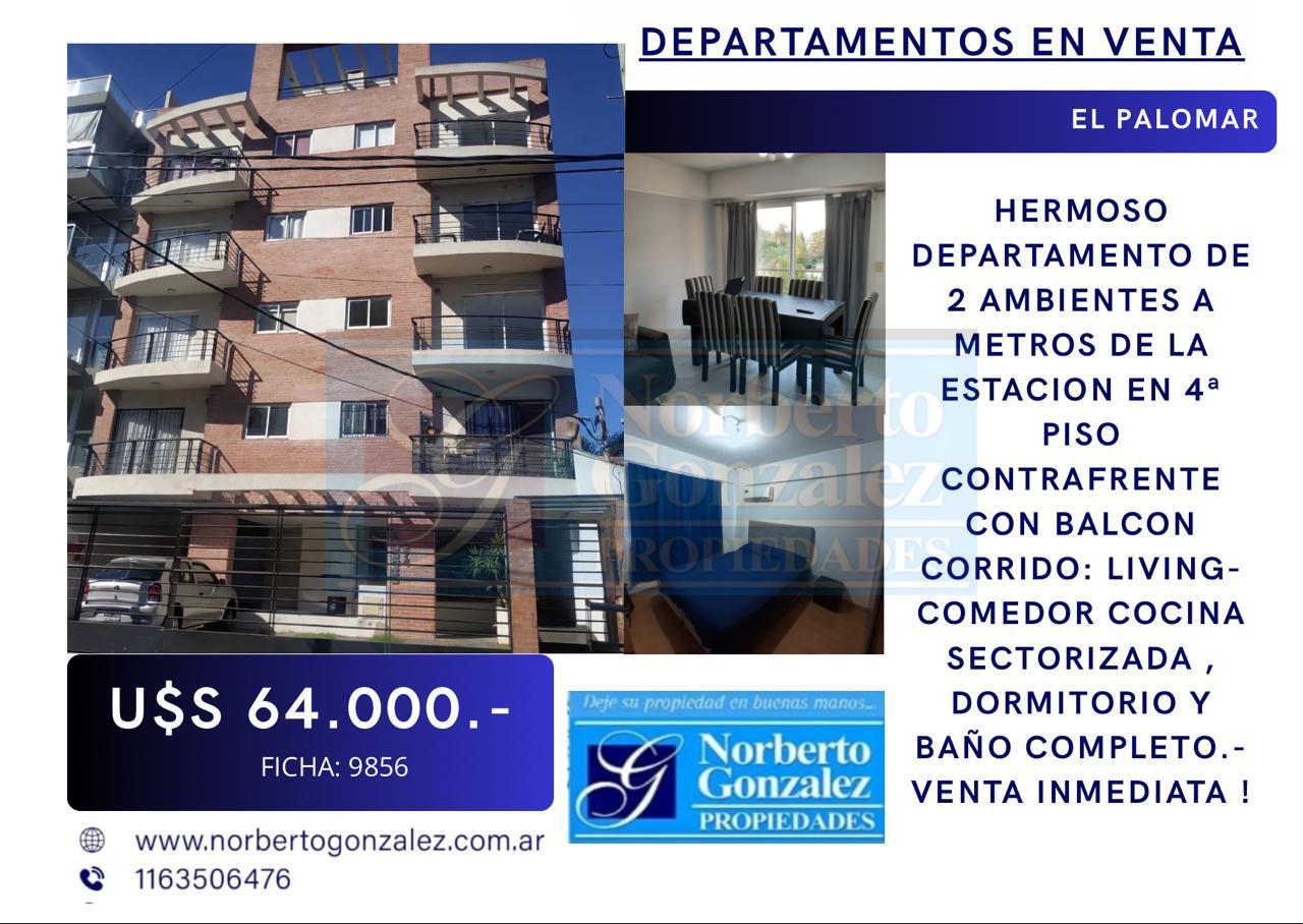 EN VENTA EN EL PALOMAR HERMOSO DEPARTAMENTO DE 2 AMBIENTES A METROS DE LA ESTACION EN 4ª PISO CONTRAFRENTE CON BALCON CORRIDO: LIVING-COMEDOR COCINA SECTORIZADA , DORMITORIO Y BAÑO COMPLETO.- VENTA INMEDIATA !!!